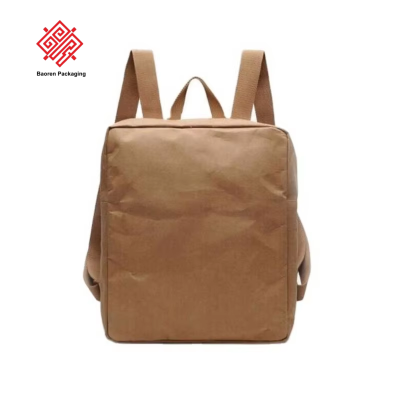 Baoren Personalized Branded 0.55MM Pink Black Brown Paper Bags with Handles Knapsack Computer Backpack Printed Craft Paper Bag