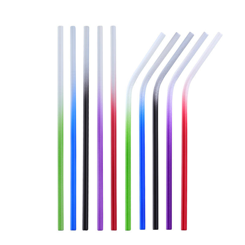 Bar Accessories Novelty Reusable Straight Eco Friendly Bent Stainless Steel Straw Multi Gradual Changing Colour Custom Logo