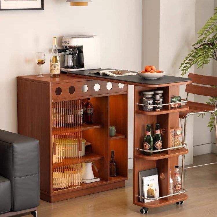 Bar Counter Solid Wood Table Integrated Island Storage Living Room Home Leisure Partition Retractable Sofa Side Cabinet