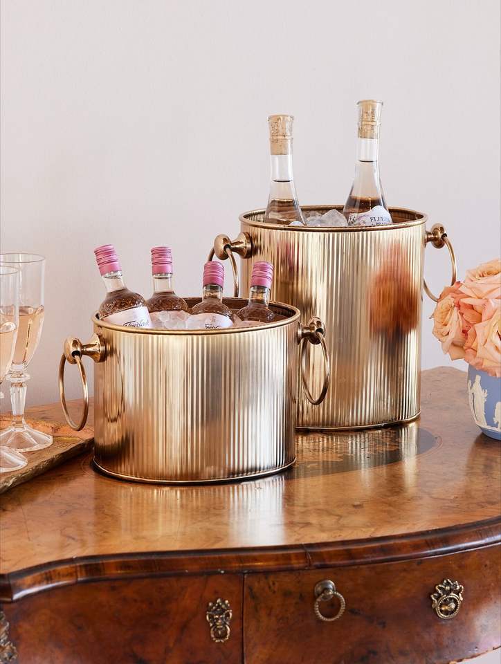Bar accessory brass ice bucket with hammered texture that enhances table aesthetics for wine service experience