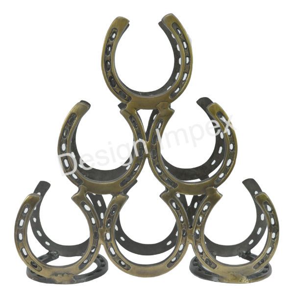 Bar and Hotel and Restaurants Table Countertop Display Racks Brass Antique Finished Horse Shoe Wine Rack Equestrian Bottle Stand