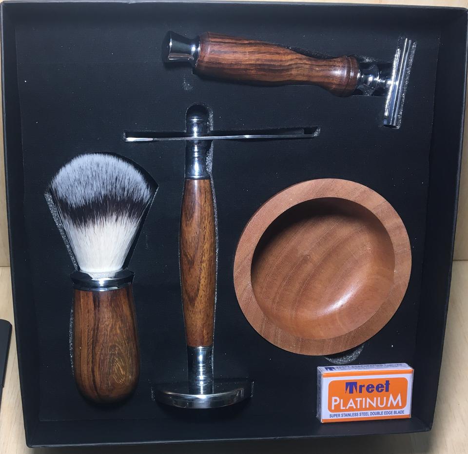 Barber Salon Man Safety Shaving Set Double Edge Open Razors Long Handle Shaving Kit Hand Crafted From Walnut: Handmade
