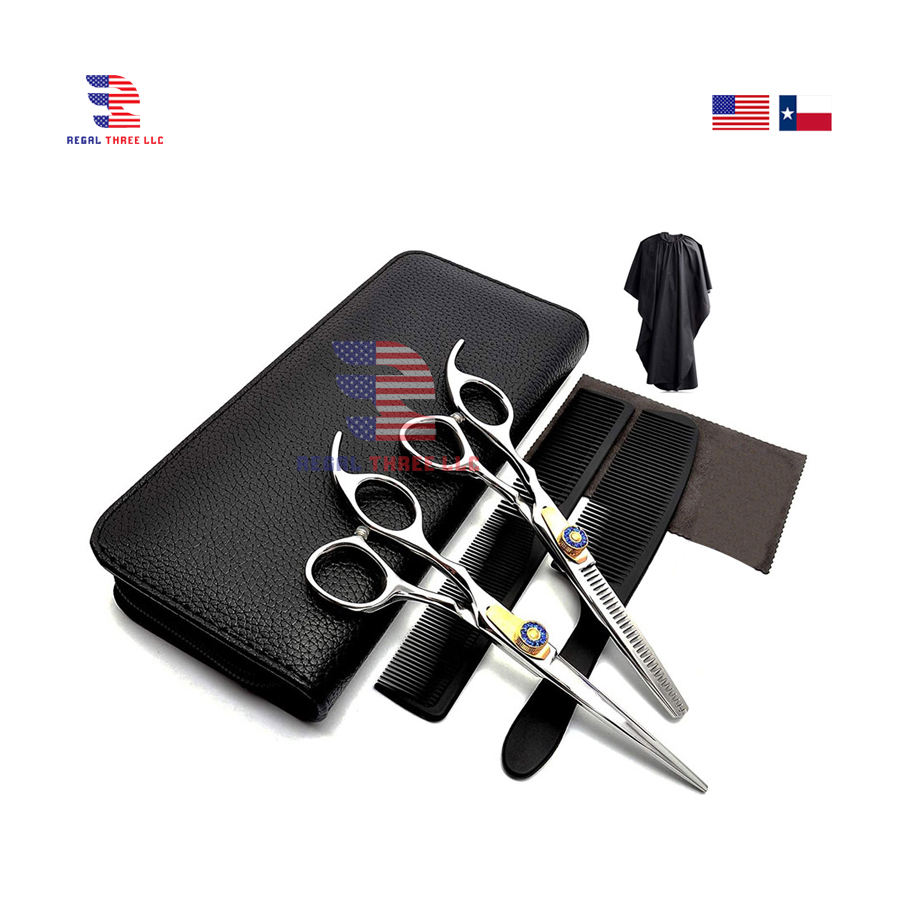 Barber Scissor, Thinning Scissors with Combs Salon-Apparel with Case Cleaning-Leather Hair Scissors Hot Sales 6 pcs Set