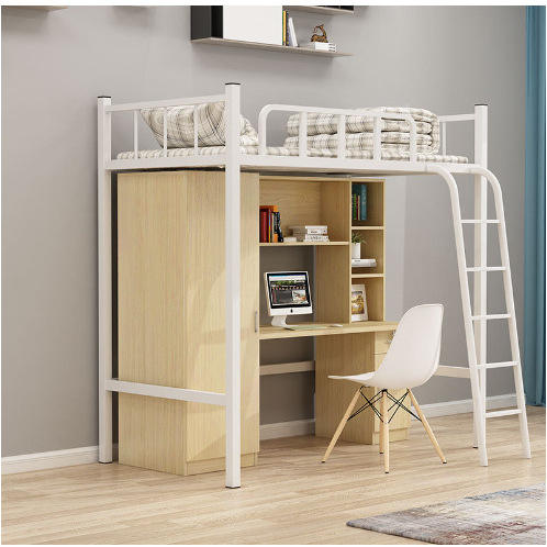 Barium Bunk Bed With Desk Underneath Single Person Ladder Climbing Dormitory Bed Wooden Storage Wardrobe For Adult