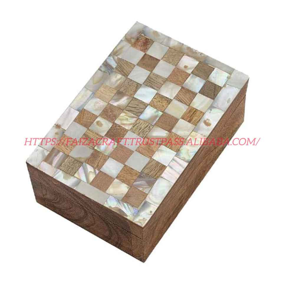 handcrafted mother of pearl inlay box. It is a type of decorative storage box, often used for jewelry or other small items