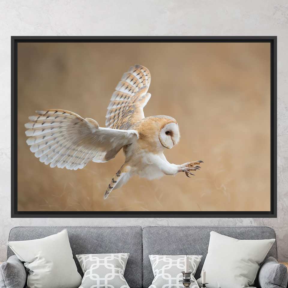 Barn Owl Art Canvas Print - Wildlife Decor, Animal Wall Art,1P:Black Framed