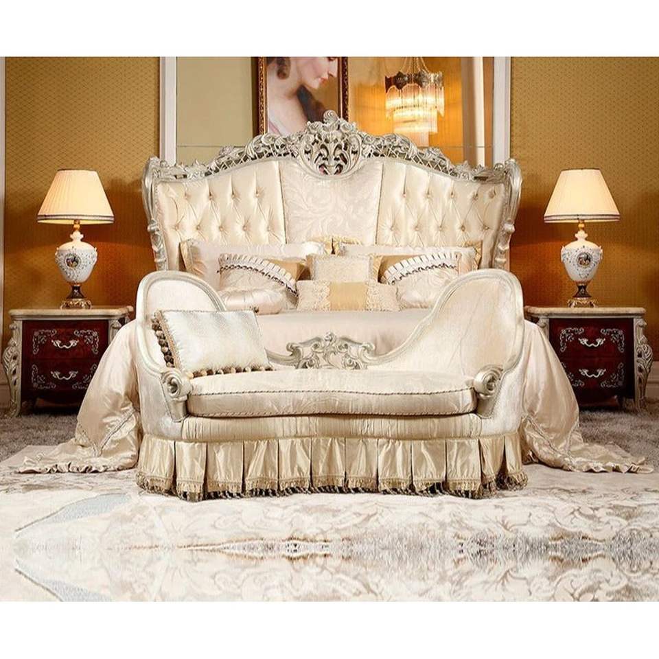 Baroque Bed with Tufted Headboard & Ornate Frame