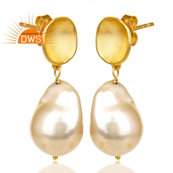 Baroque Freshwater Pearl Drop Earrings Plated Jewelry Designer 925 Silver Earrings Manufacturer Gold Trendy GENMEL Earrings 14k