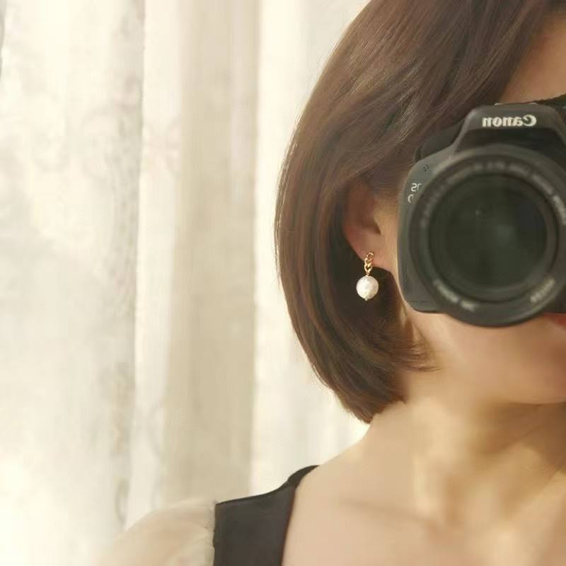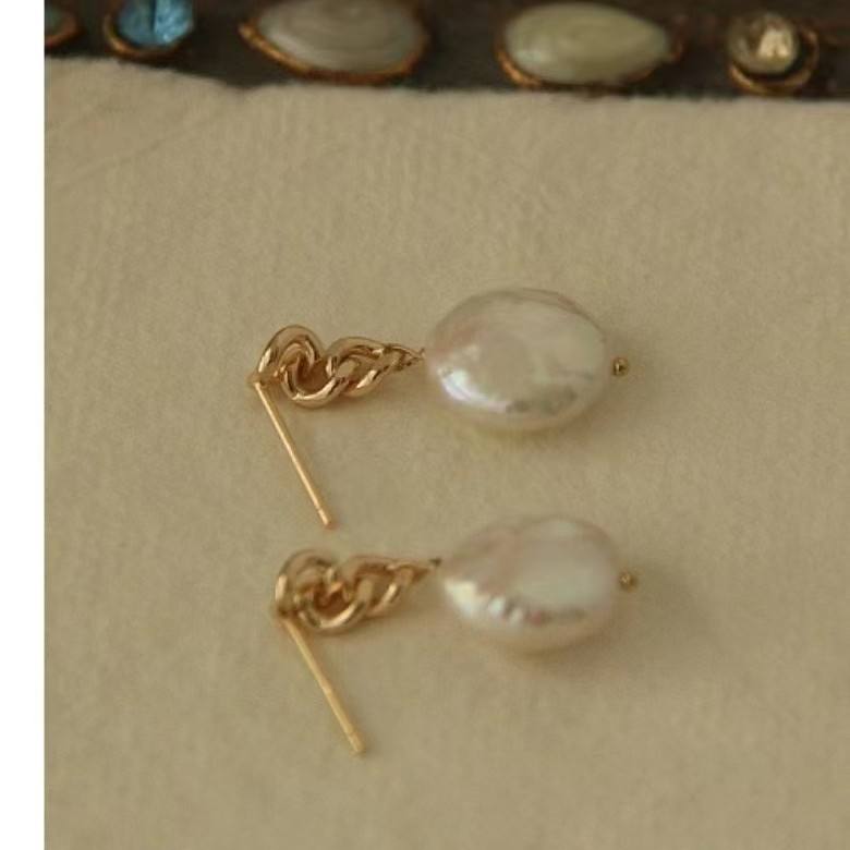 Baroque Shaped S925 Silver Button Pearl Earrings Simple Personalized Design Fashion Chandelier Style Chain Collision-Free