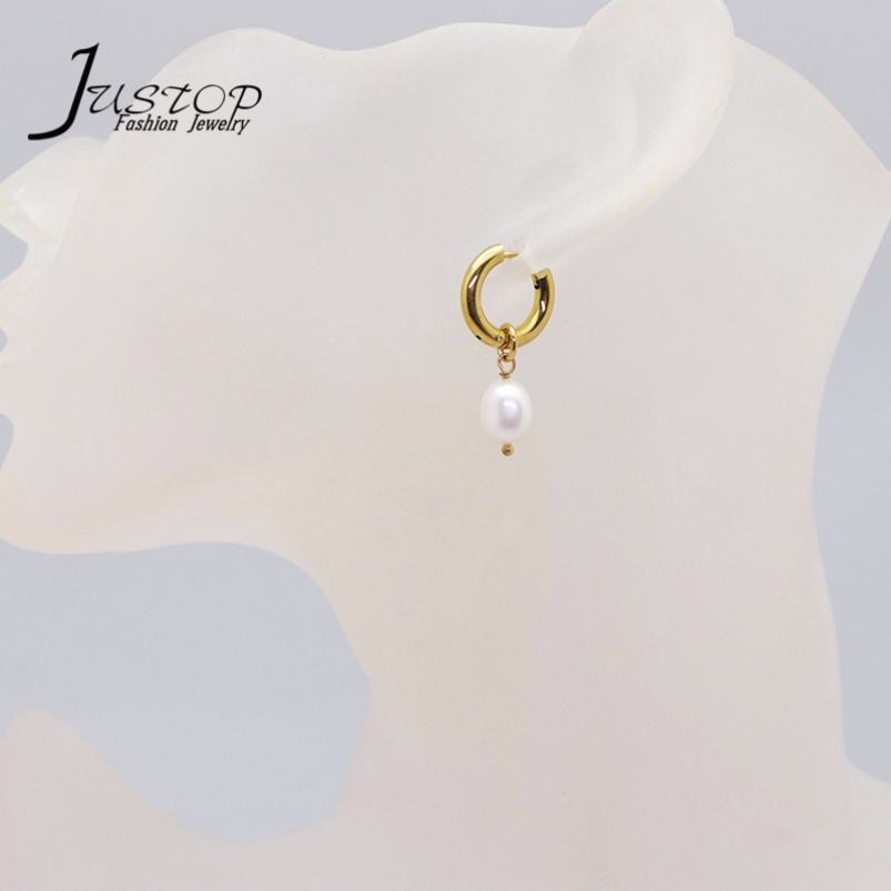 Baroque Simple Stainless Steel Freshwater Drop Hoop Pearl Earrings 18K Gold Plated Environmental Friendly Trendy Unisex
