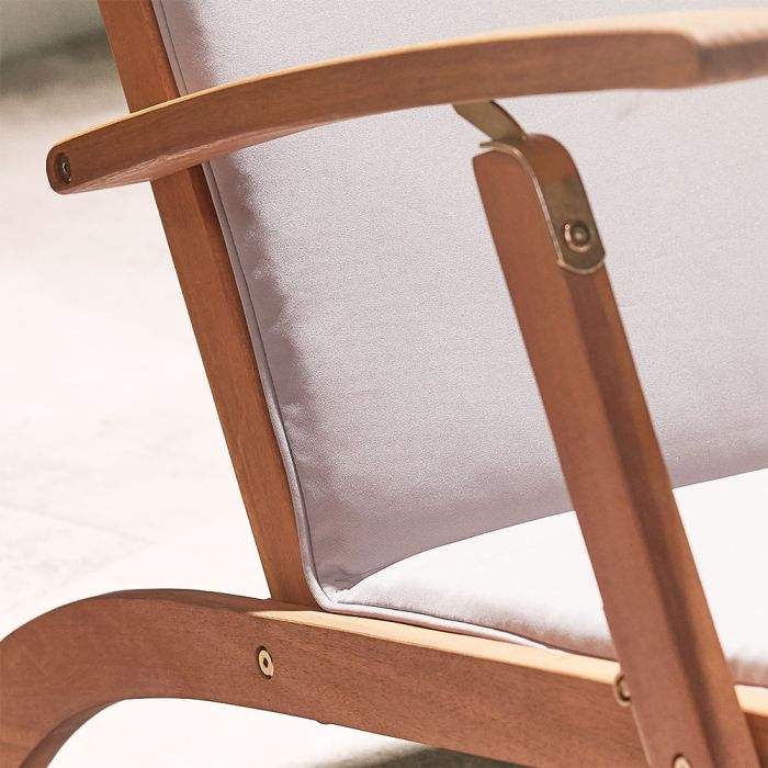 HMS 78 Set of Two Brown Indoor/Outdoor Chaise Lounge Solid Wood with Beige Cushion Plastic Rattan for Courtyard Leisure