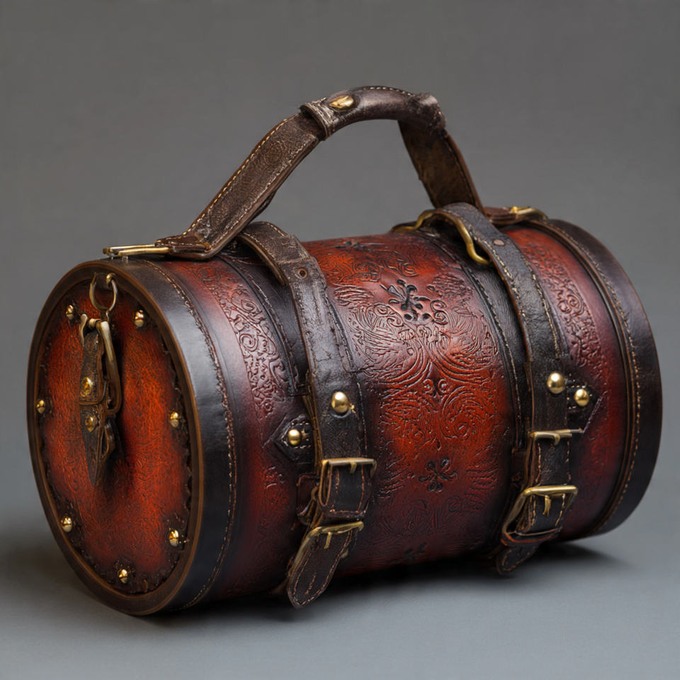 Barrel-Shaped Crossbody Bags Duffel Barrel Leather Bag Adult Streetwear Genuine Leather Barrel Bags Ladies