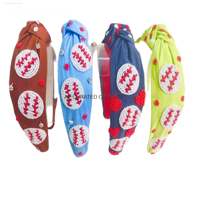 Baseball Game Day Hair Accessory Seed Beaded Hairbands Women Hairbands Style Indian Hand Embellished Seed Beaded Hairbands