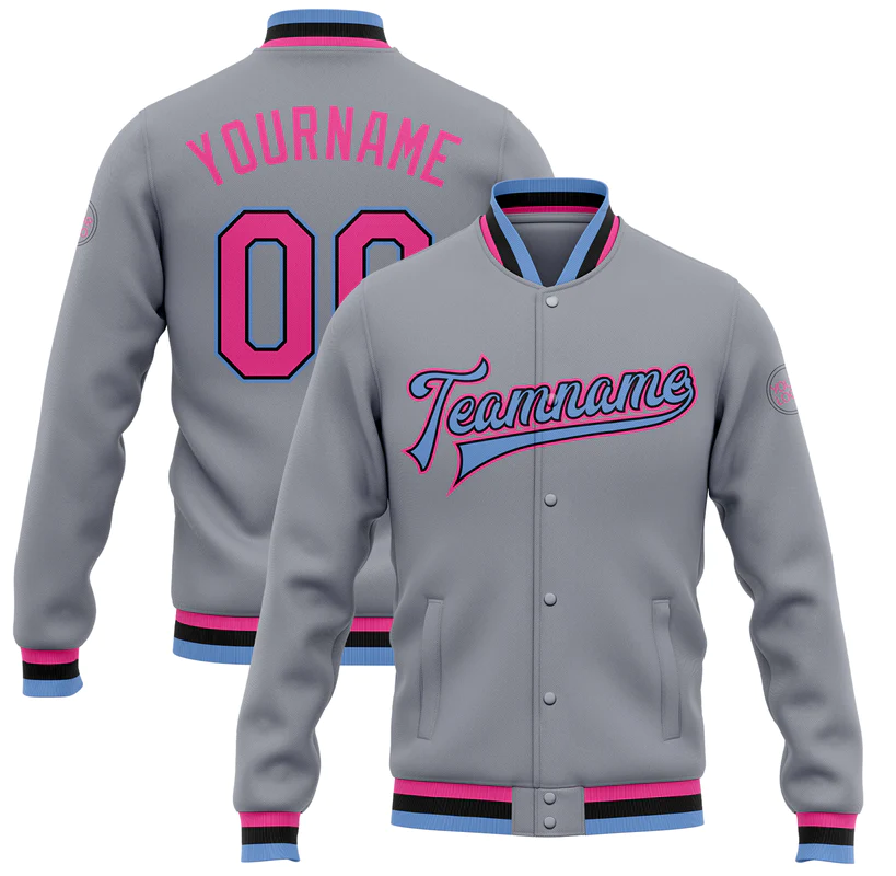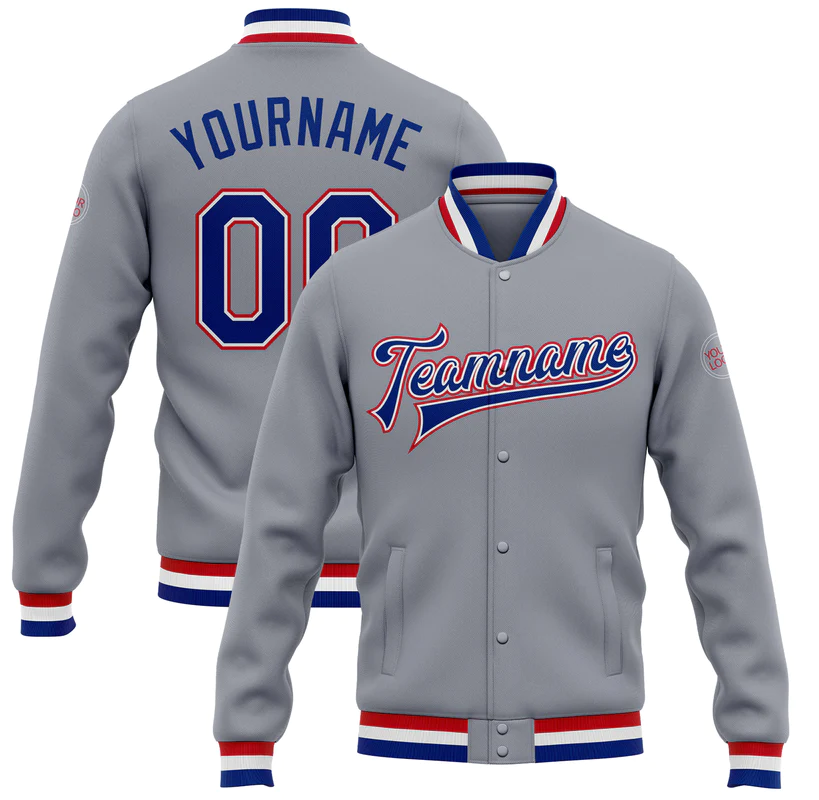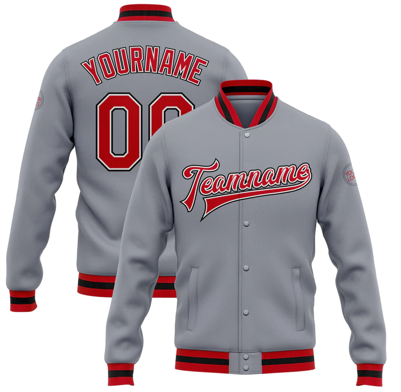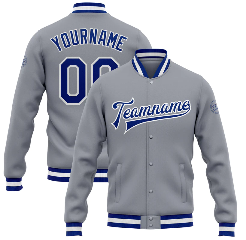 Baseball Varsity Jacket Grey Team Wear Name Number Letterman University Jackets by Elegant Sports