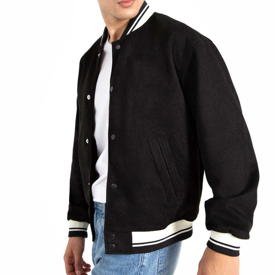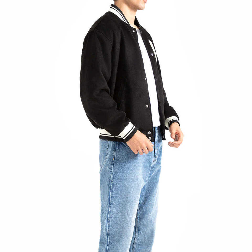 Baseball jacket for men patchwork Black Varsity Jacket Genuine Wool Sleeves Jacket Best Selling 2025