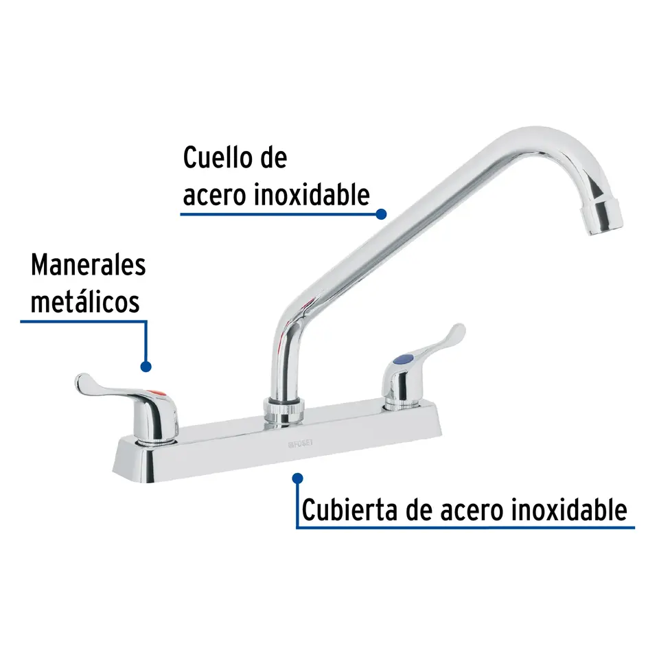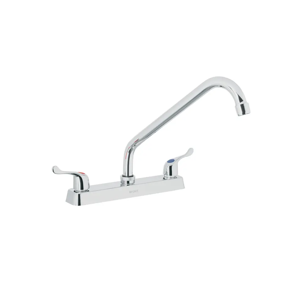 Basic 8' Chrome Sink Mixer with Long Neck Lever Box Set of 2 Units Stainless Steel Surface Nano Treated