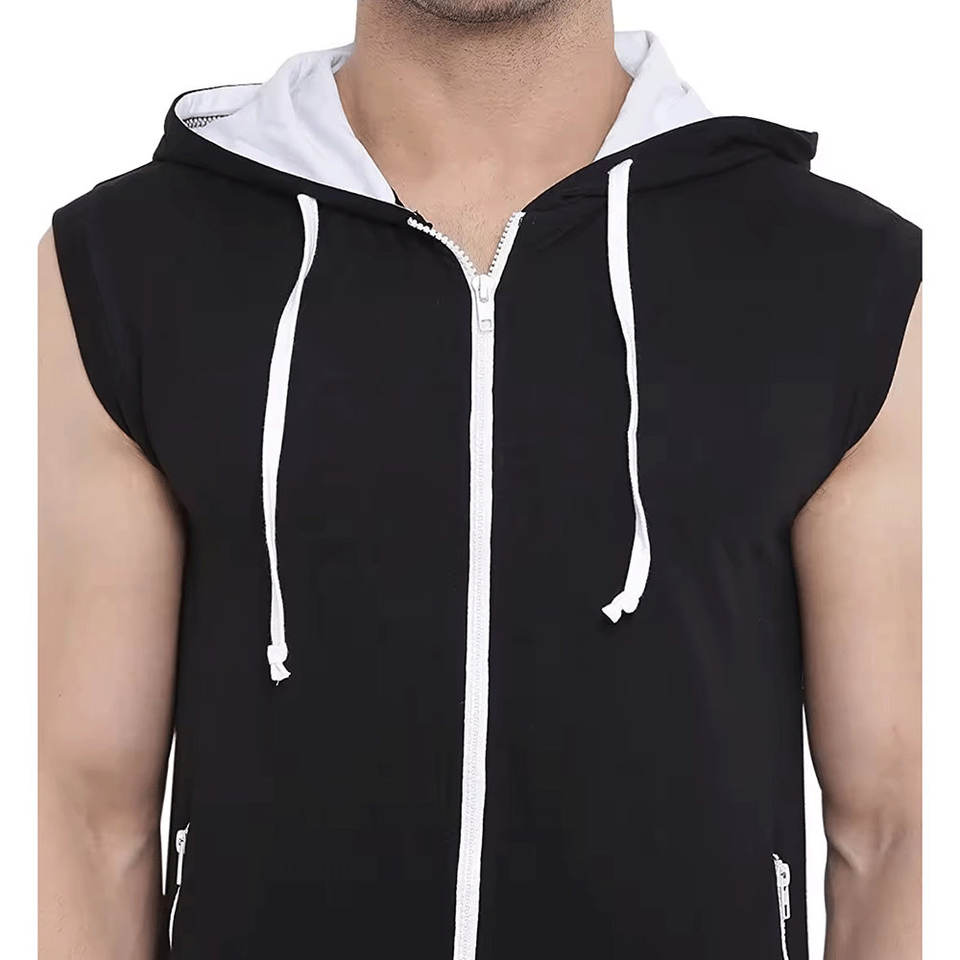 Basic Cotton Blended High Quality Sleeveless Gym Hoodie Men with Zipper Front Hand Pockets 100% Cotton for Winter Active Wear