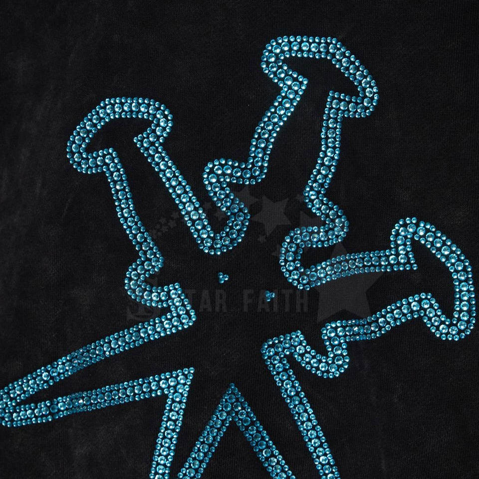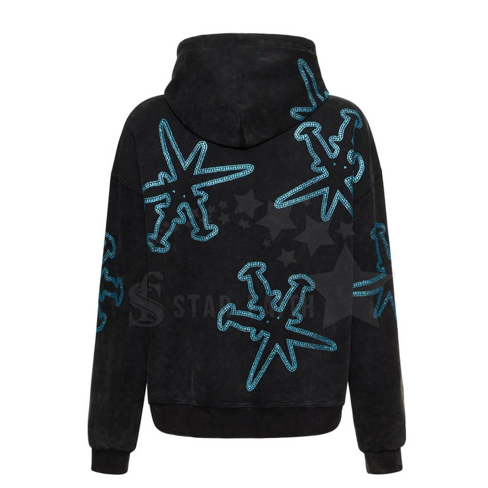 Basic Men Acid Wash Rhinestone Hoodie Streetwear Cotton Blended Pullover Hip Hop Sparkly Hoodie Fashion Top