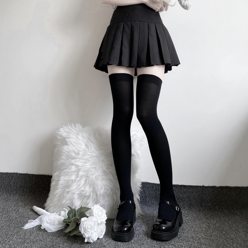 Basic Plain Women's High Socks Available in Black and White in Two Length Options
