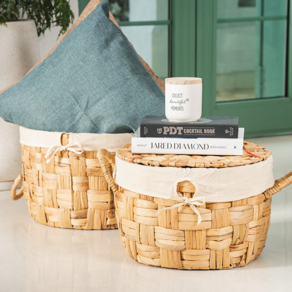 Basic need Best Price Water Hyacinth Storage Basket With Cotton Fabric For Storage Things Cheap Wholesale Basket From Vietnam