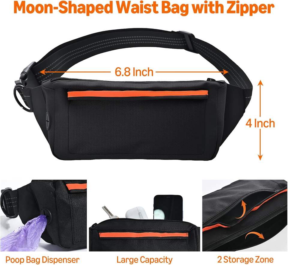 Basics Hands Free Dog with Running Bag, Adjustable Waist Belt, Dual Padded Handles, Reflective Bungee Leash for Walking,