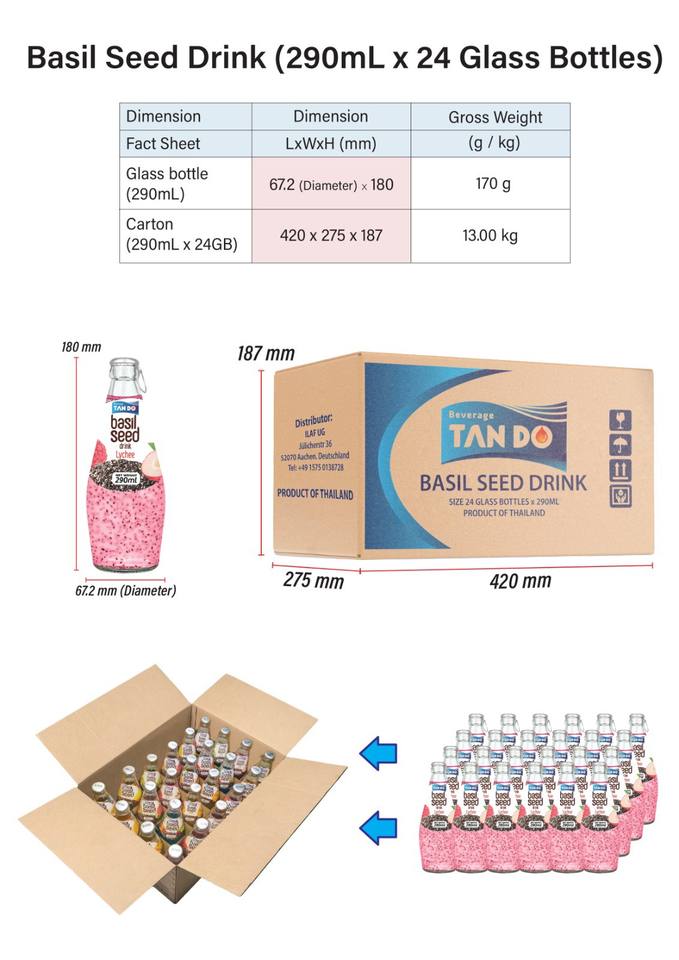 Tan Do Quality 290ml Glass Bottle Basil Seed Puree Mixed with Fruit and Vegetable Juice Competitive Price