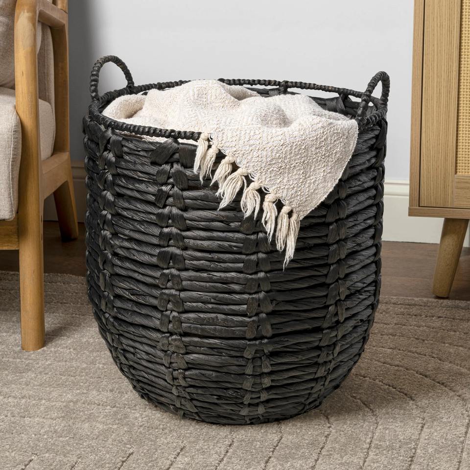Size: D16,5 x H19,5 inch:Basket of black-dyed water hyacinth