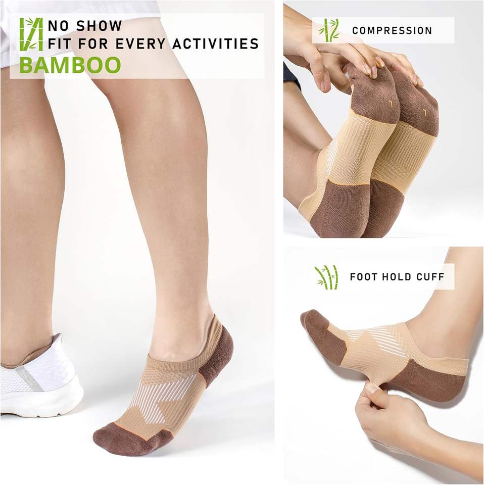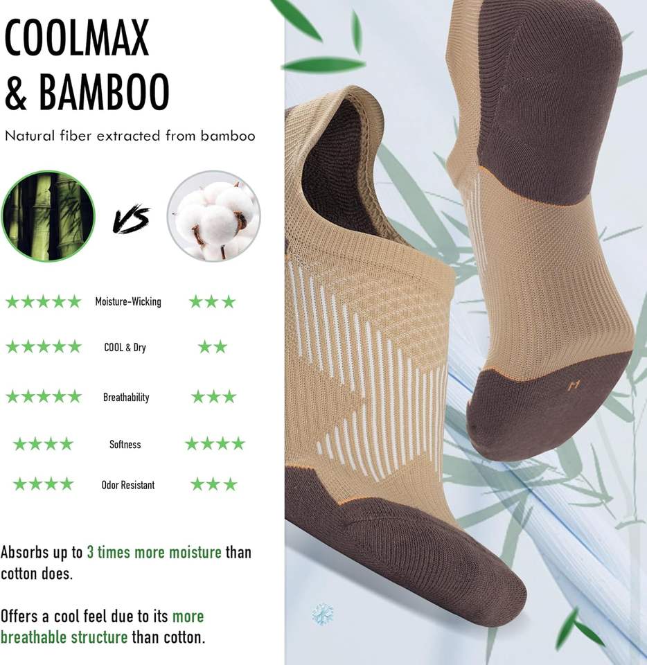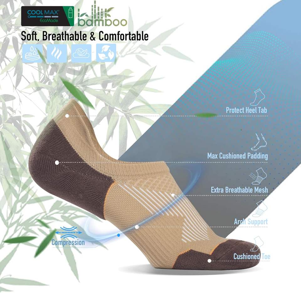 Basketball SocksBamboo Compression Men's Running No Show Socks Cushioned Moisture Wicking Arch Support Athletic Pad Crew Logo