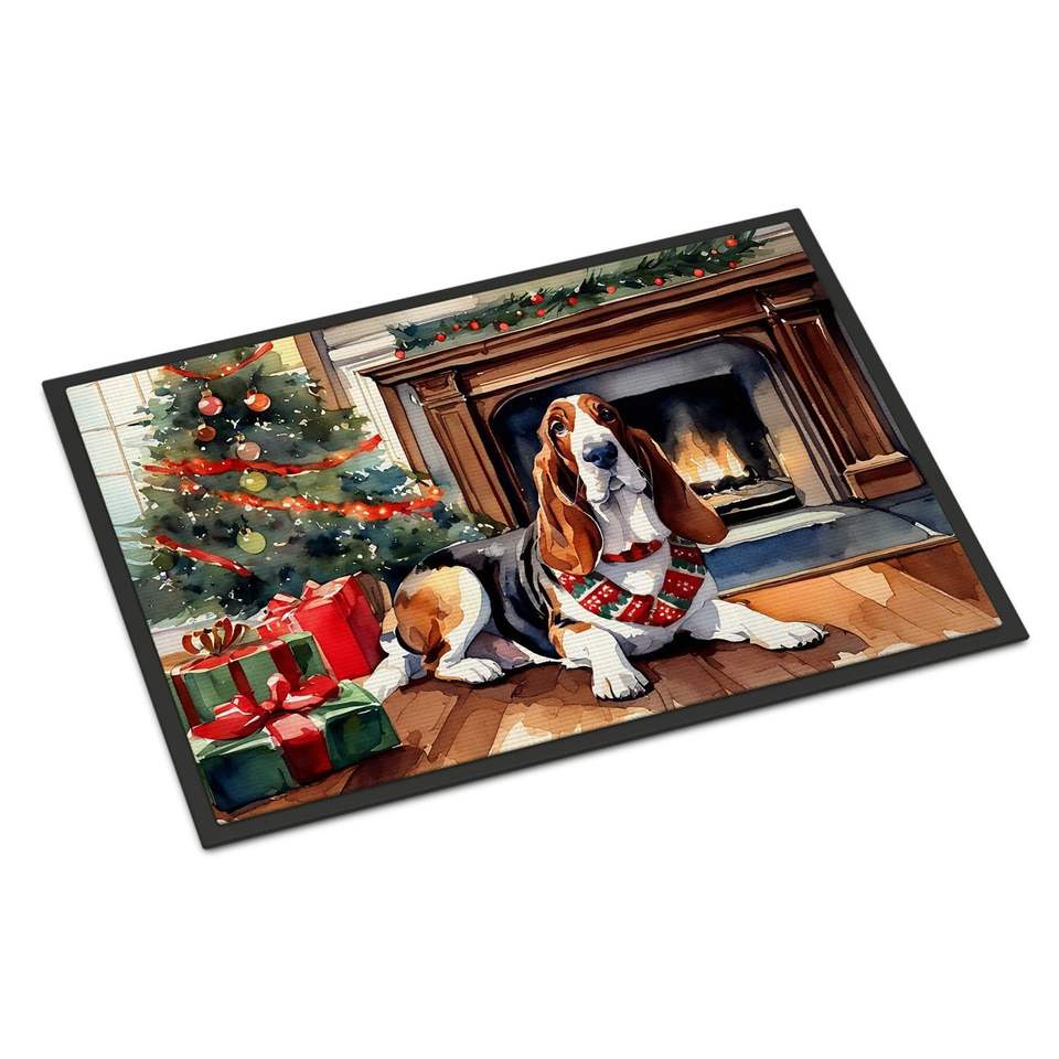 Basset Hound Cozy Christmas Doormat Non-Slip Washable Low Pile 24H X 36W for Indoor & Outdoor for Entryway Front Door Mat