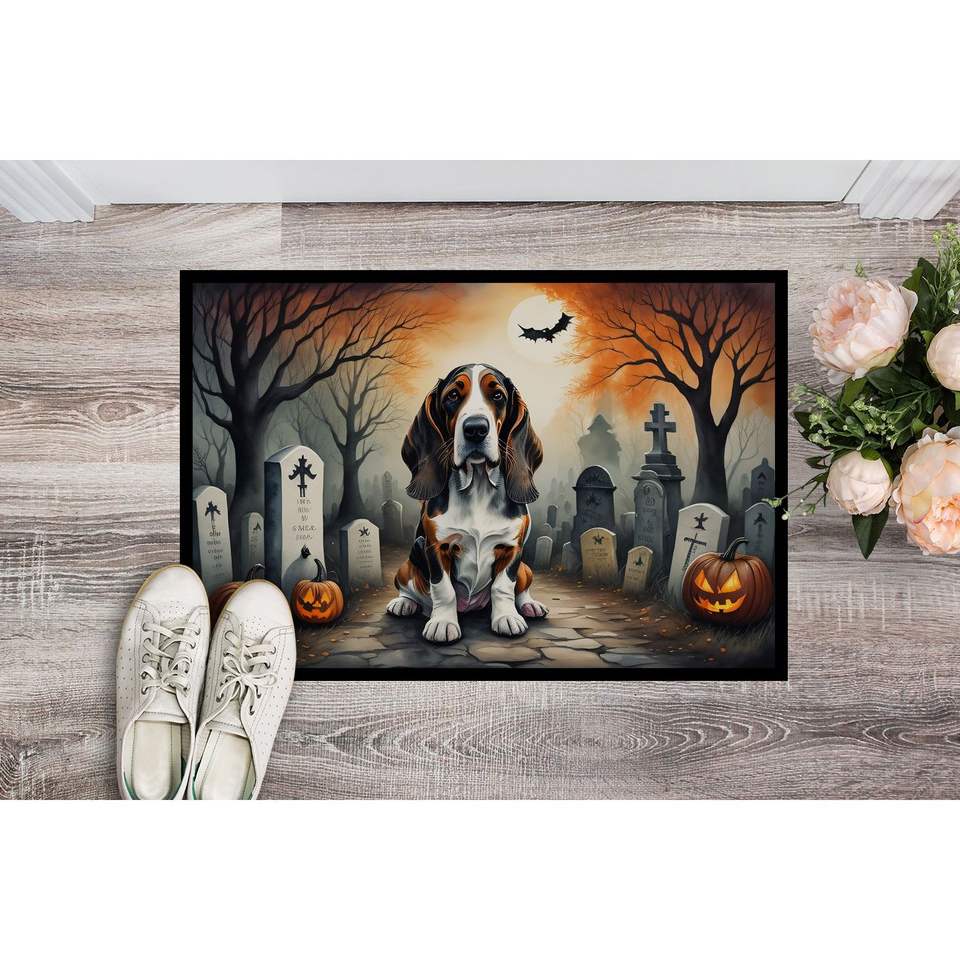 Basset Hound Spooky Halloween Doormat Non-Slip Washable Low Pile Indoor/Outdoor Front Door Mat 24H X 36W