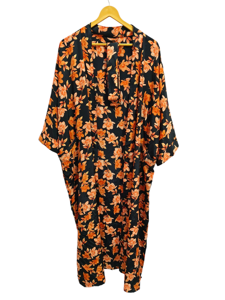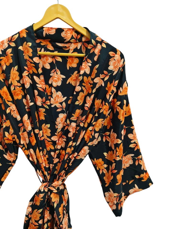 Bathrobe Multi Color Robe Woman Night Wear Long Robe, Floral Print Indian Vintage Recycled Silk Sari Kimono,