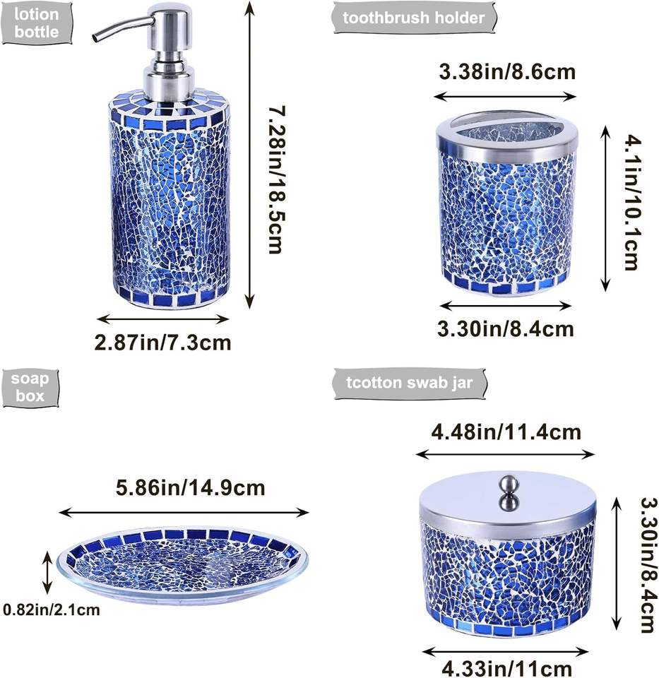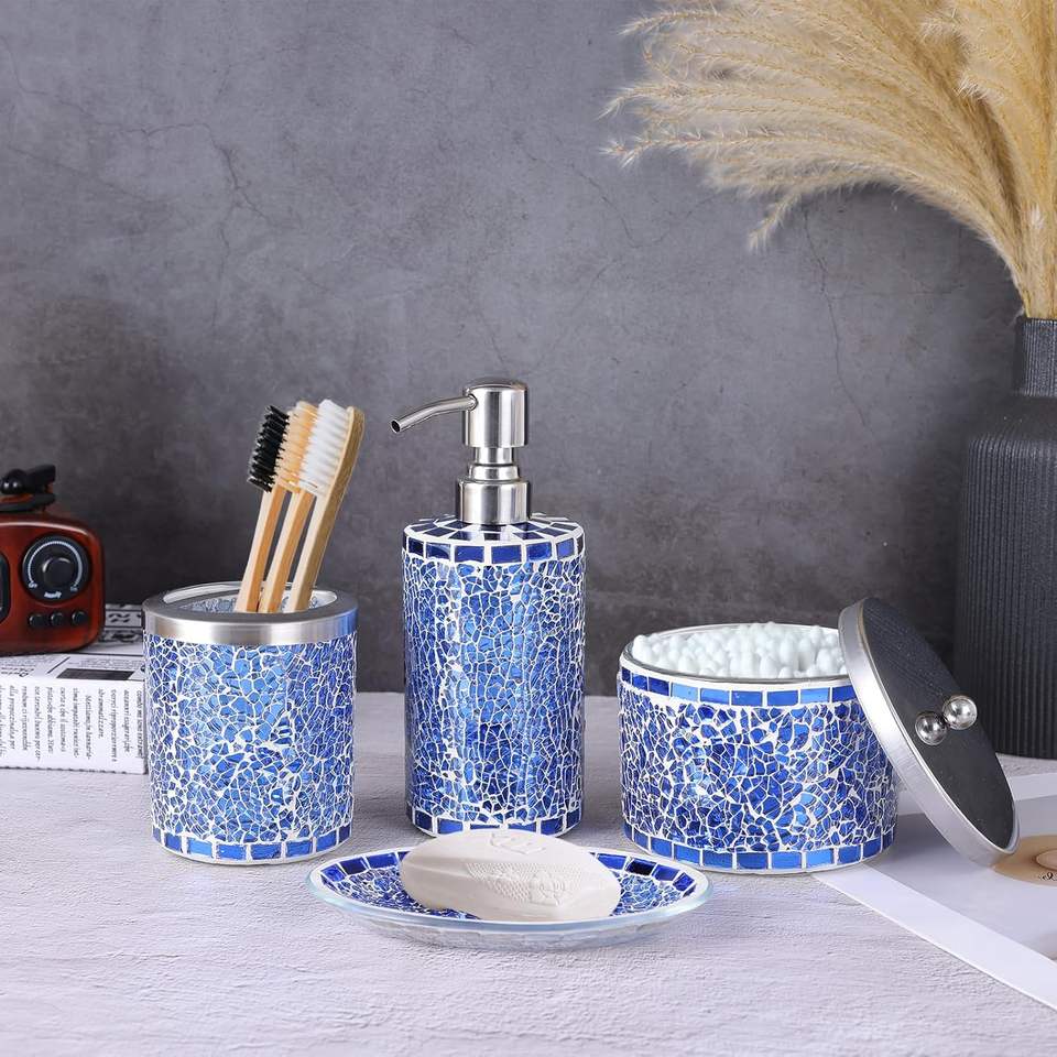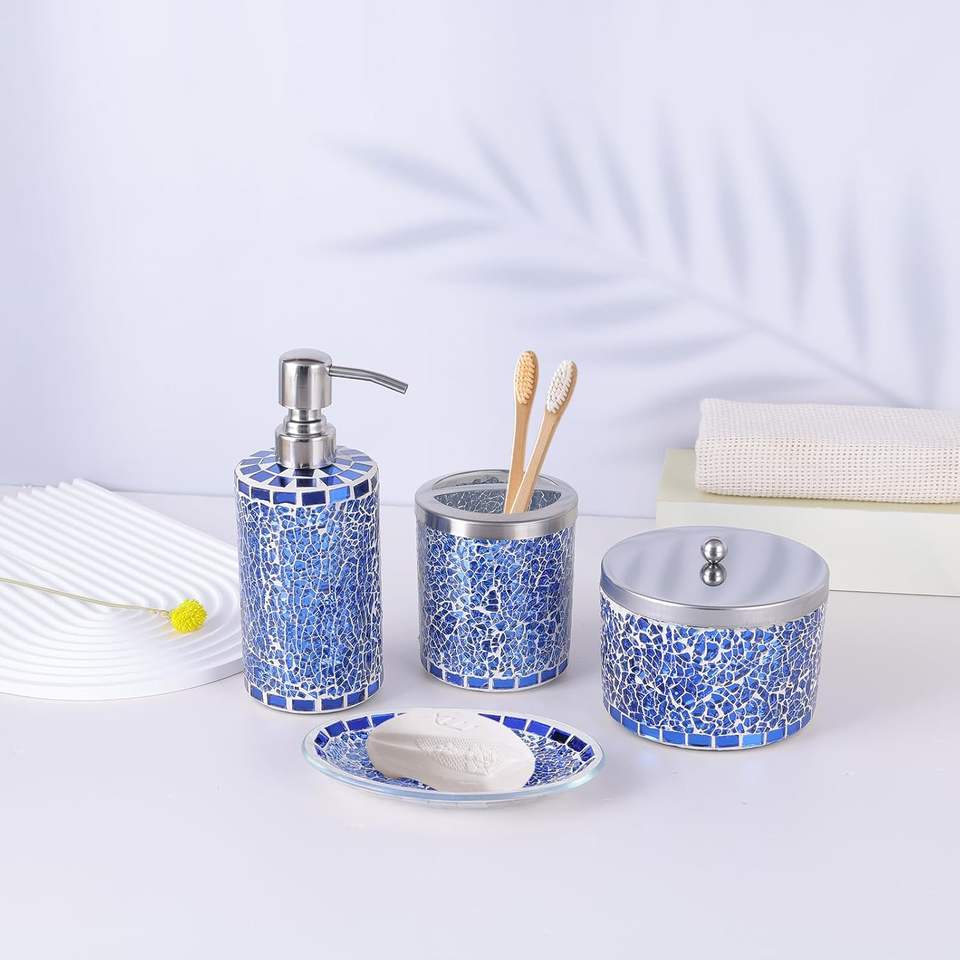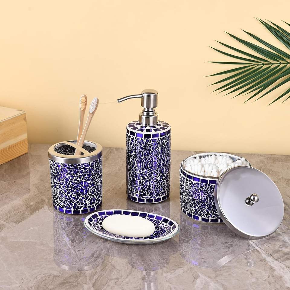 Elegant Navy Blue Mosaic Luxury Glass Bathroom Accessories Set Soap Dispenser Modern Design for Hotel Use High-standard Quality