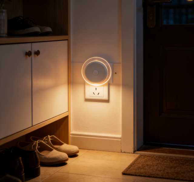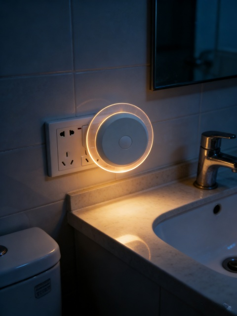Bathroom Bedroom Home Kitchen Corridor White Night Light Dusk to Dawn Sensor Energy Saving Round Smart Wall Night Light