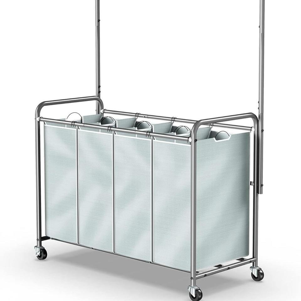 Bathroom Bedroom Removable Hanging Clothing Rack 4 Section Laundry Hamper Sorter with Wheels