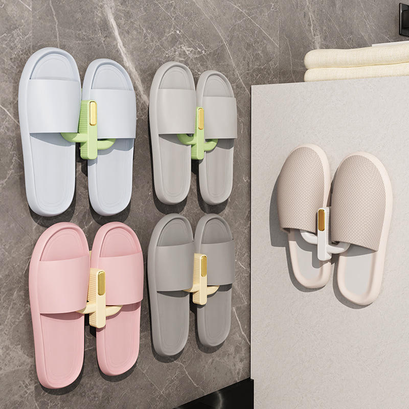 Bathroom Slipper Rack Wall Mounted No Drill Storage Organizer For Shoes And Slides With Durable Rectangular Design