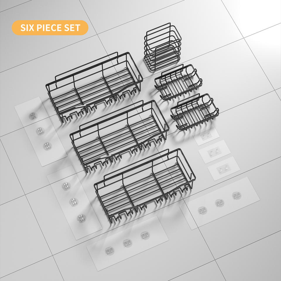 Bathroom Storage Rack Set 5 Piece Wall Mounted Black Metal Organizer For Toiletries Soap Holder Multi Purpose