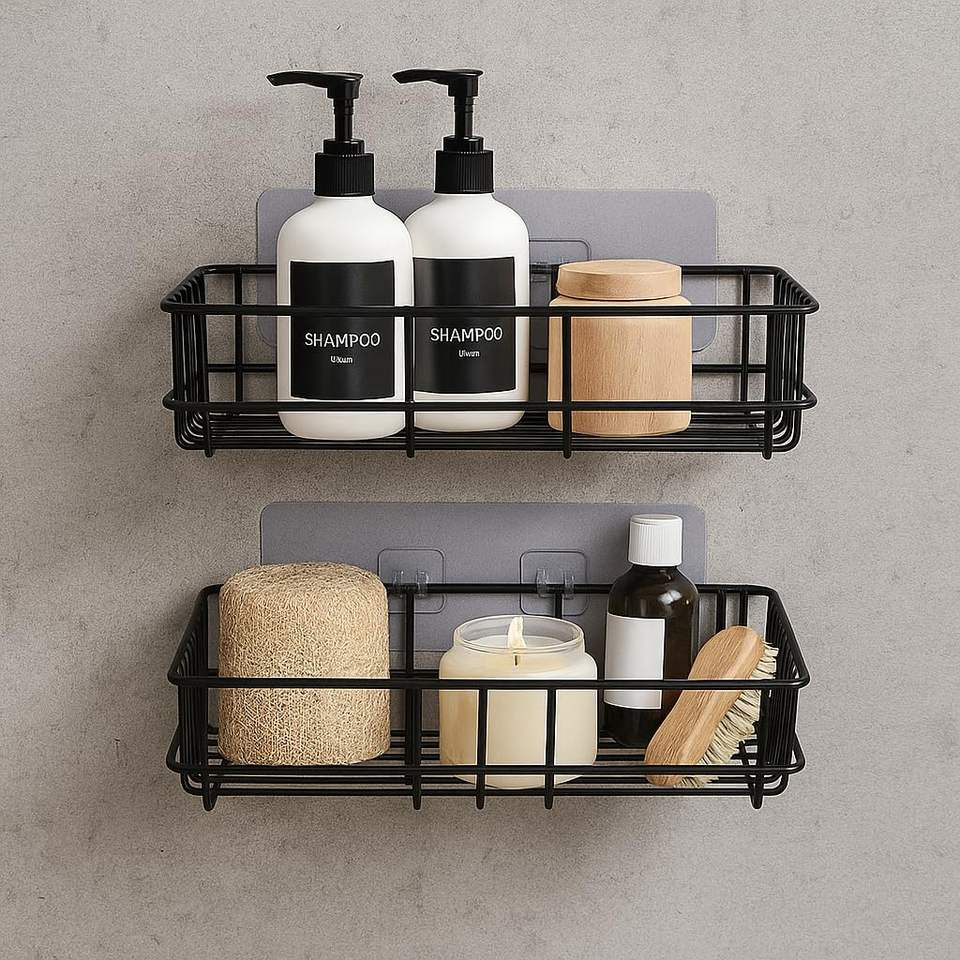 Bathroom Storage Rack , Shampoo cabinet, spice rack, Metal Rack in Black Bathroom Organizers