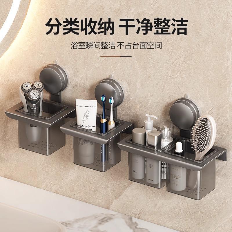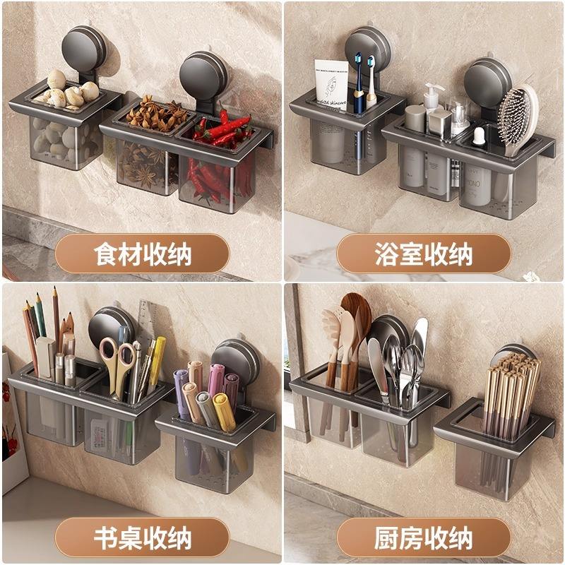 Bathroom Suction Cup Storage Rack Rectangular Corner Mounted Durable For Toothbrushes Toothpaste Combs Makeup Pens