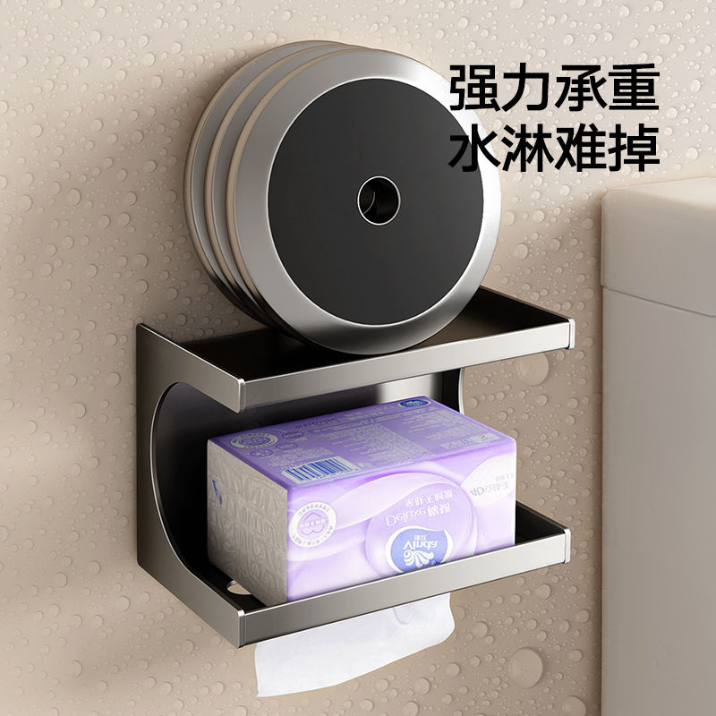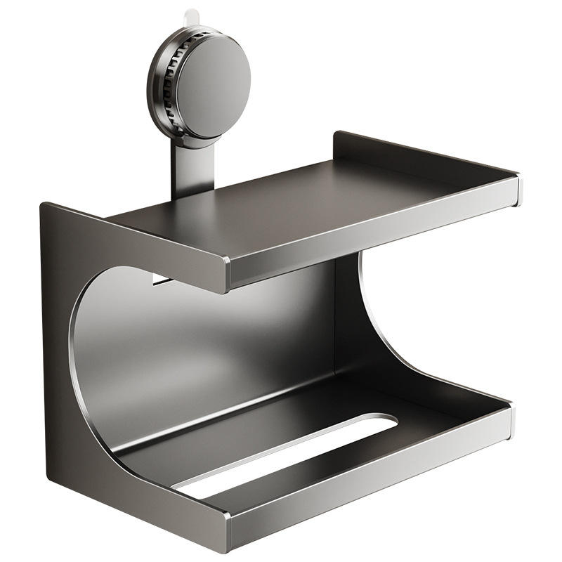 Bathroom Suction Cup Tissue Box Holder Wall Mounted Toilet Paper Storage With Phone Tray Multipurpose No Drilling Required