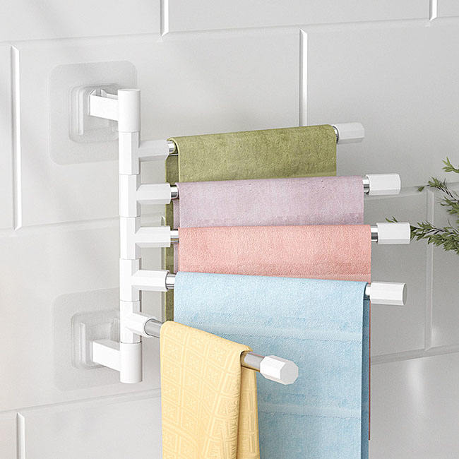 Bathroom Towel Rack Non-punched Stainless Steel Washstand Rotating Wall Mount Towel Rack Kitchen Rag Towel Hanging
