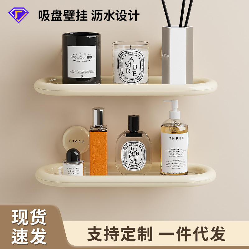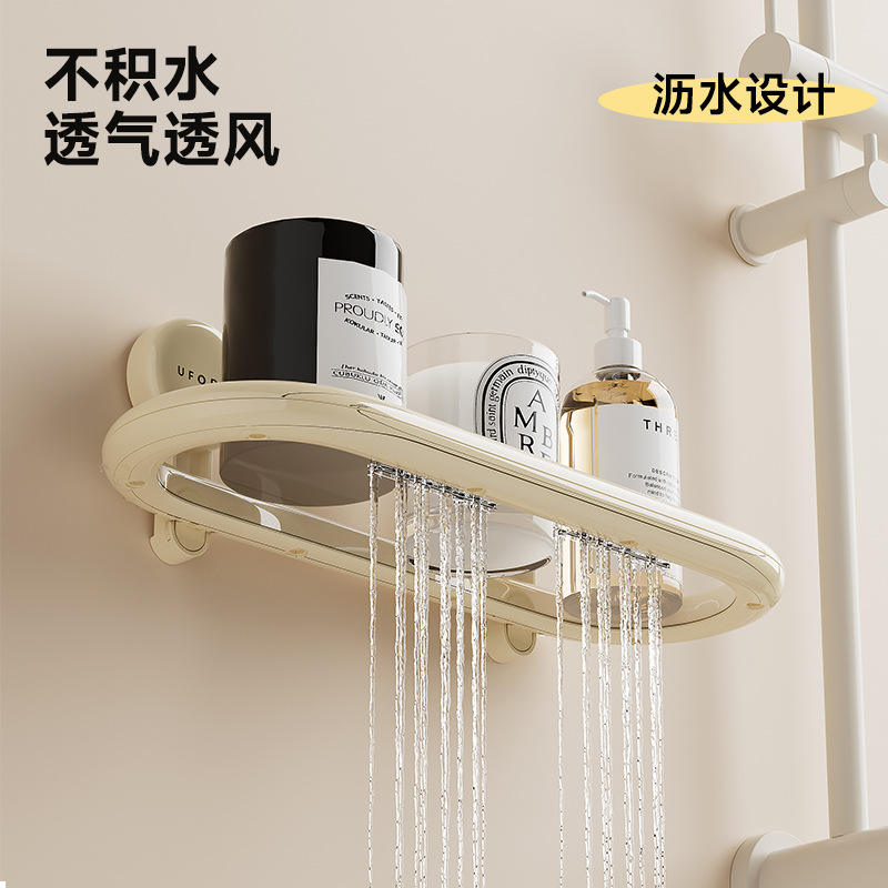Bathroom Wall Mounted Storage Rack Suction Cup Rectangular Drainable Soap And Shower Gel Holder No Drilling Required