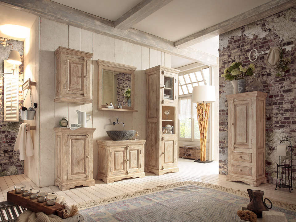 Bathroom tall cabinet patina