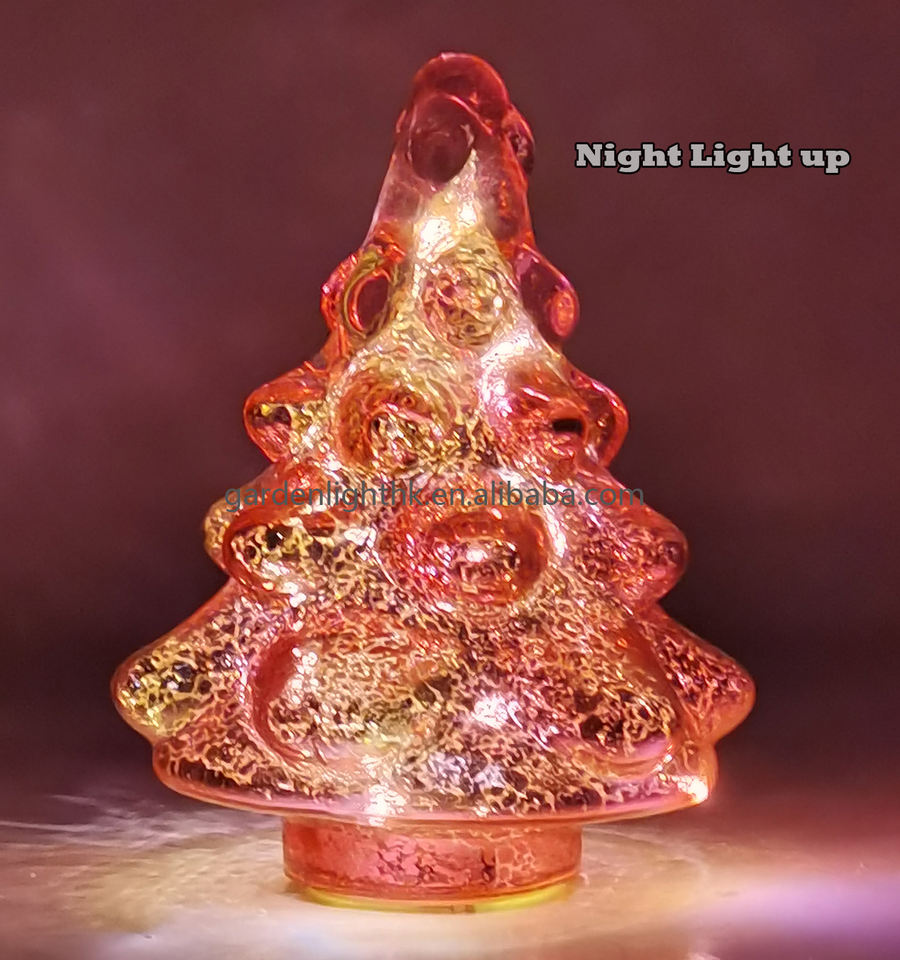 Battery Operated Red Glass Christmas Tree w/ Copper Wire LED Lights for Home & Desktop Decor Holiday Festive Centerpiece