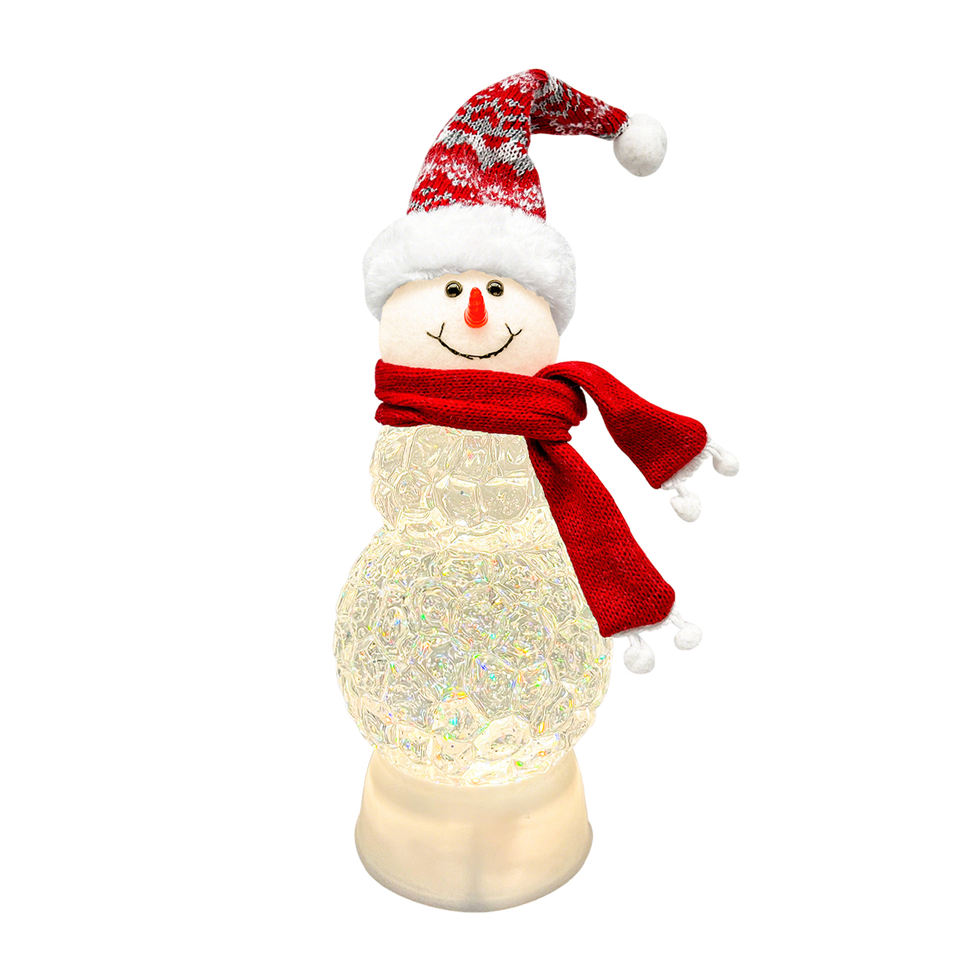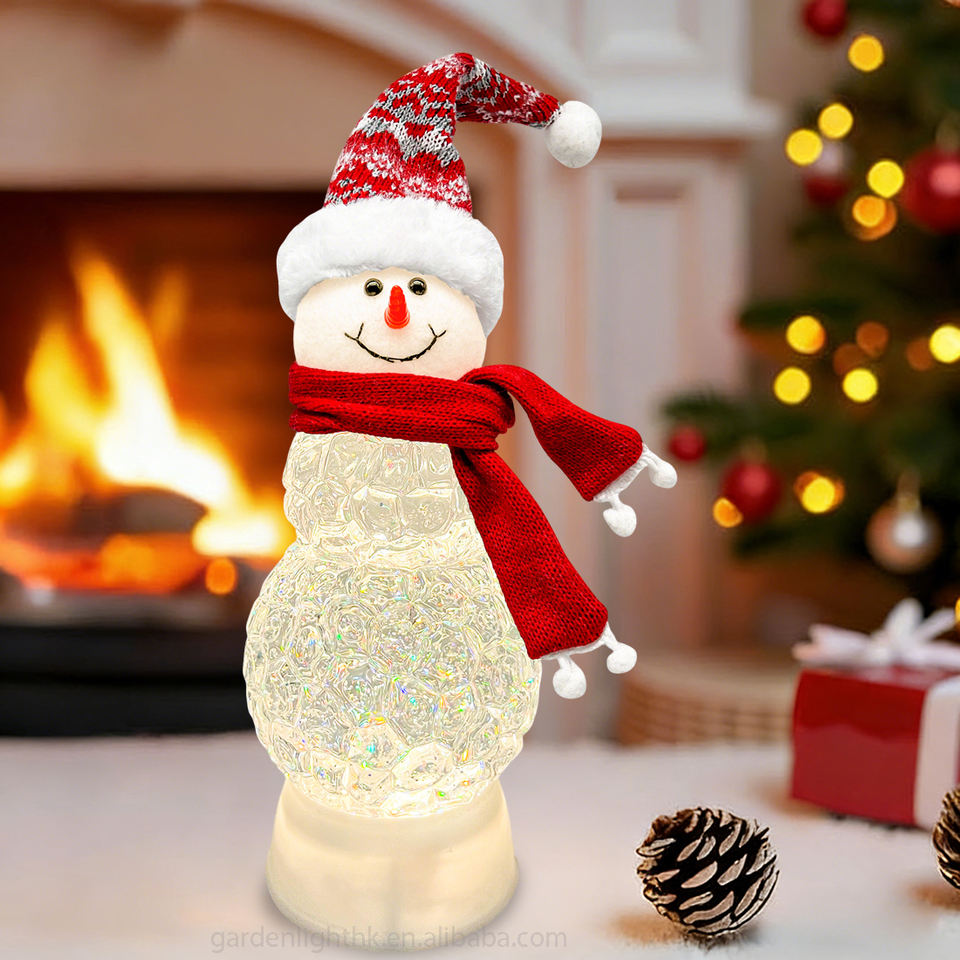 Battery Powered Glittering LED Snowman Lantern-Light up Water Globe Red Scarf Christmas Tabletop Decor for Home Hotel Parties