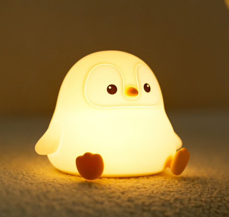 Battery Powered USB Rechargeable LED Cute Penguin Silicone Night Lamp Touch Control baby Sleep light for Children's Bedroom