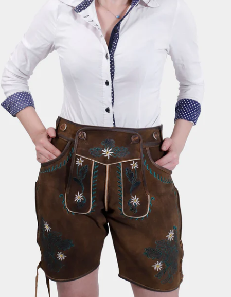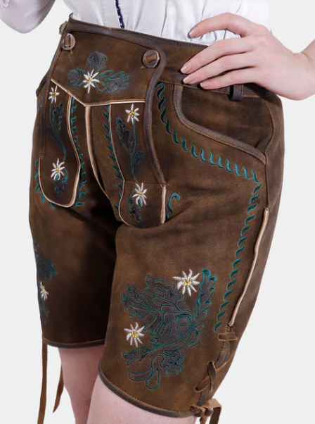 Bavarian Trachten Shorts German Traditional Lederhosen for Women Fabric Lederhosen with Decorative Pocket