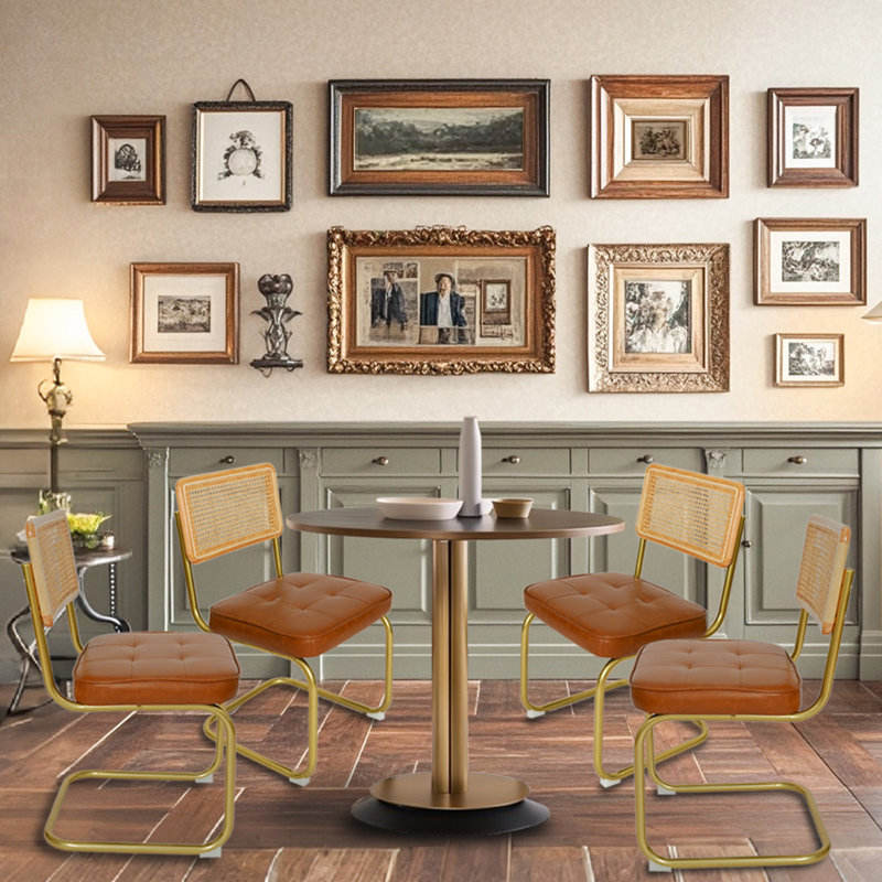 Bayou Breeze Mid-century Modern Armless Chair Natural Mesh Rattan Backrest with Faux Leather Seat Metal Legs for Apartment Use