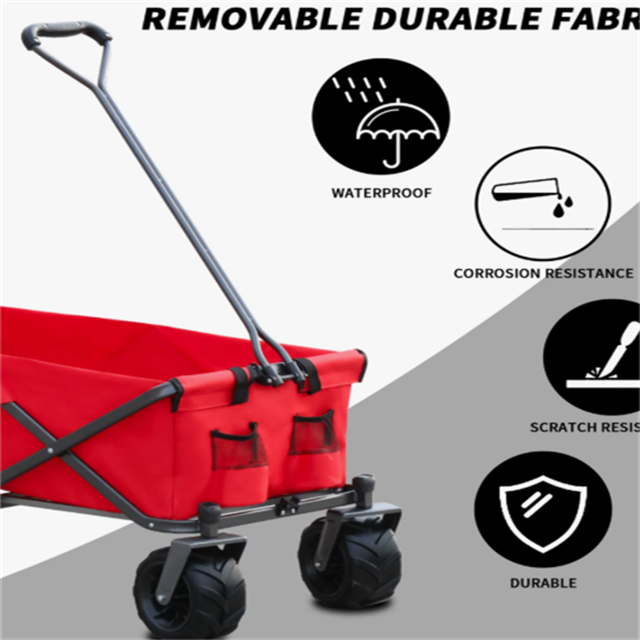 Beach & Camping Foldable Trolley Wagon - 4 Wheeled Portable Cart for Grocery, Picnic & Outdoor Gear Hauling