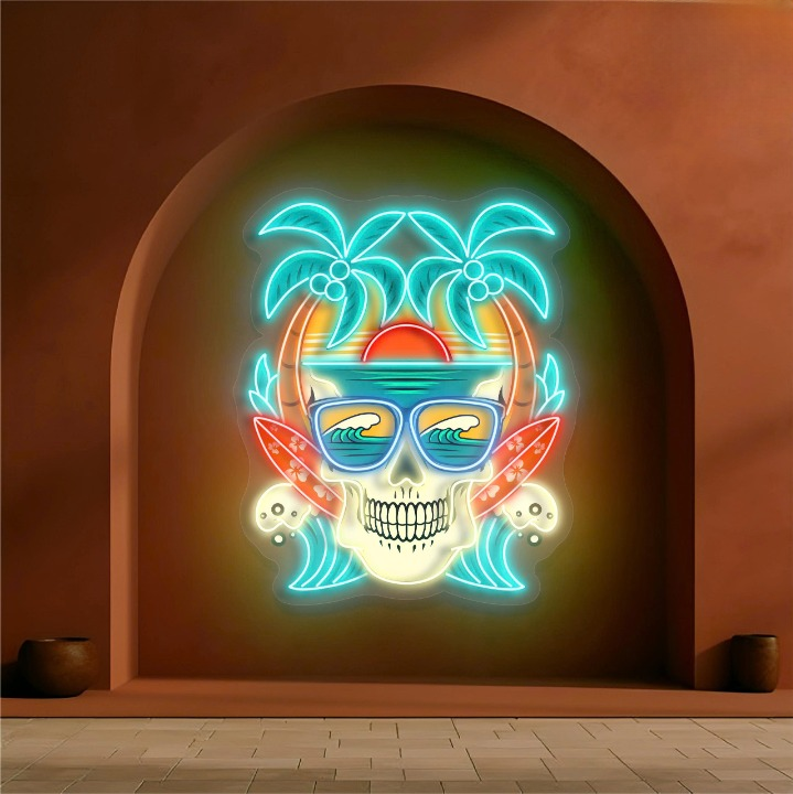 Beach Paradise Skull Led Neon Sign Unique Handcrafted LED Neon Lights Business Sign and Event Wall Art Decor Neon Signs