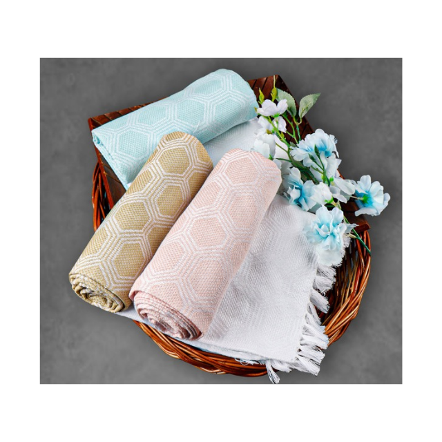 Beach Party Towel 100% Cotton 550GSM Boho Embroidered Texture Size 28x58in Ultra Absorbent Quick Dry GOTS Certified Fabric India